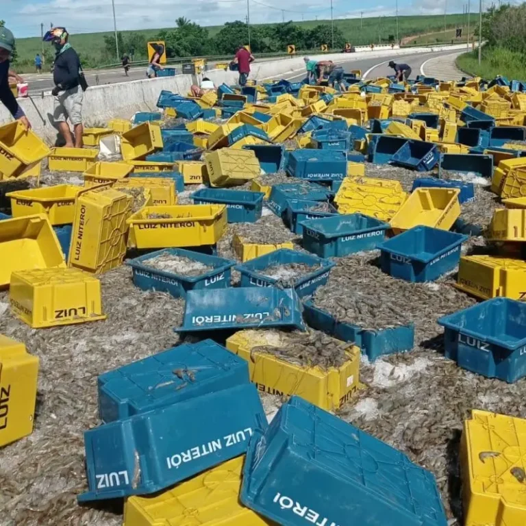 Um caminhão carregado com camarão tombou, neste sábado (11), no km 75 da BR-101, no trecho que liga João Pessoa a Natal. O acidente provocou a interdição total da pista no local.
